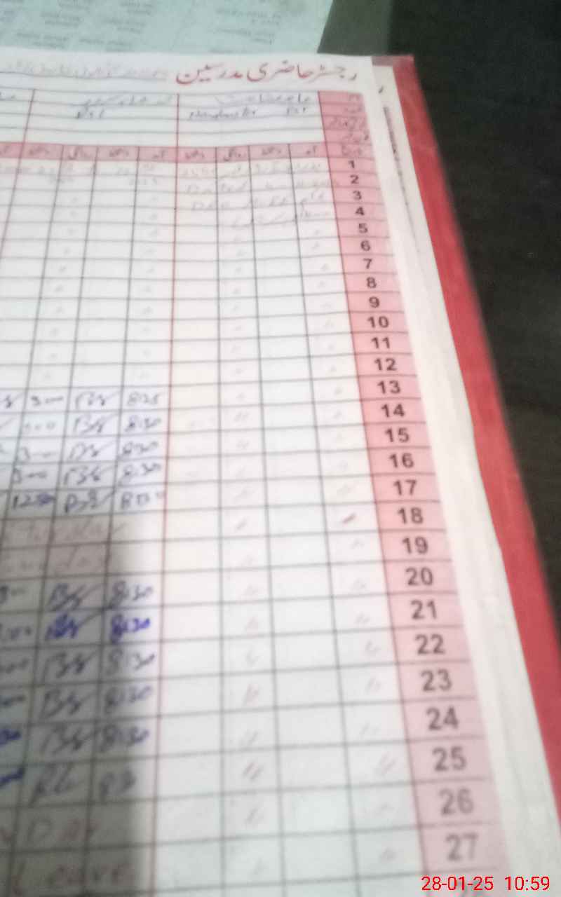 | CNIC | Full Name | Designation | R/C | Absence During Last Calender Month |