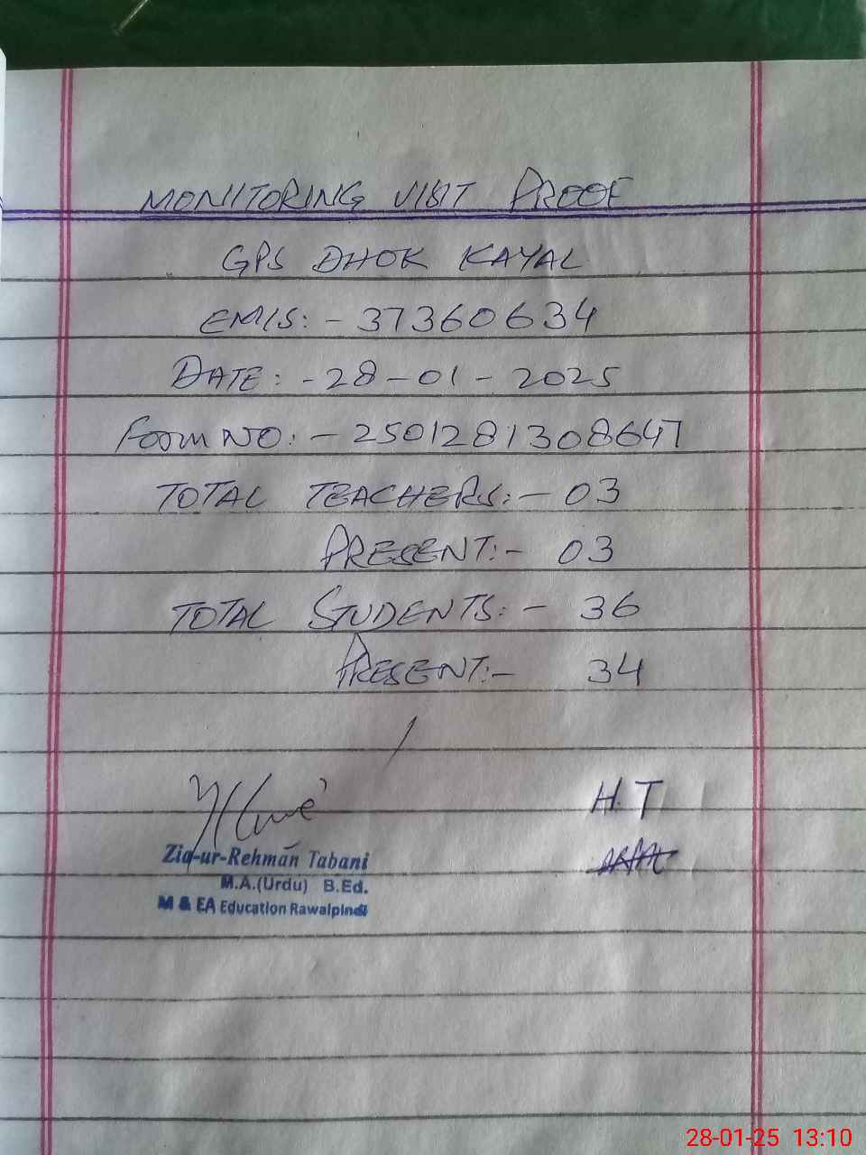 | EMIS Code: 37360634 | Name of School: GPS DHOK KAYAL | |||