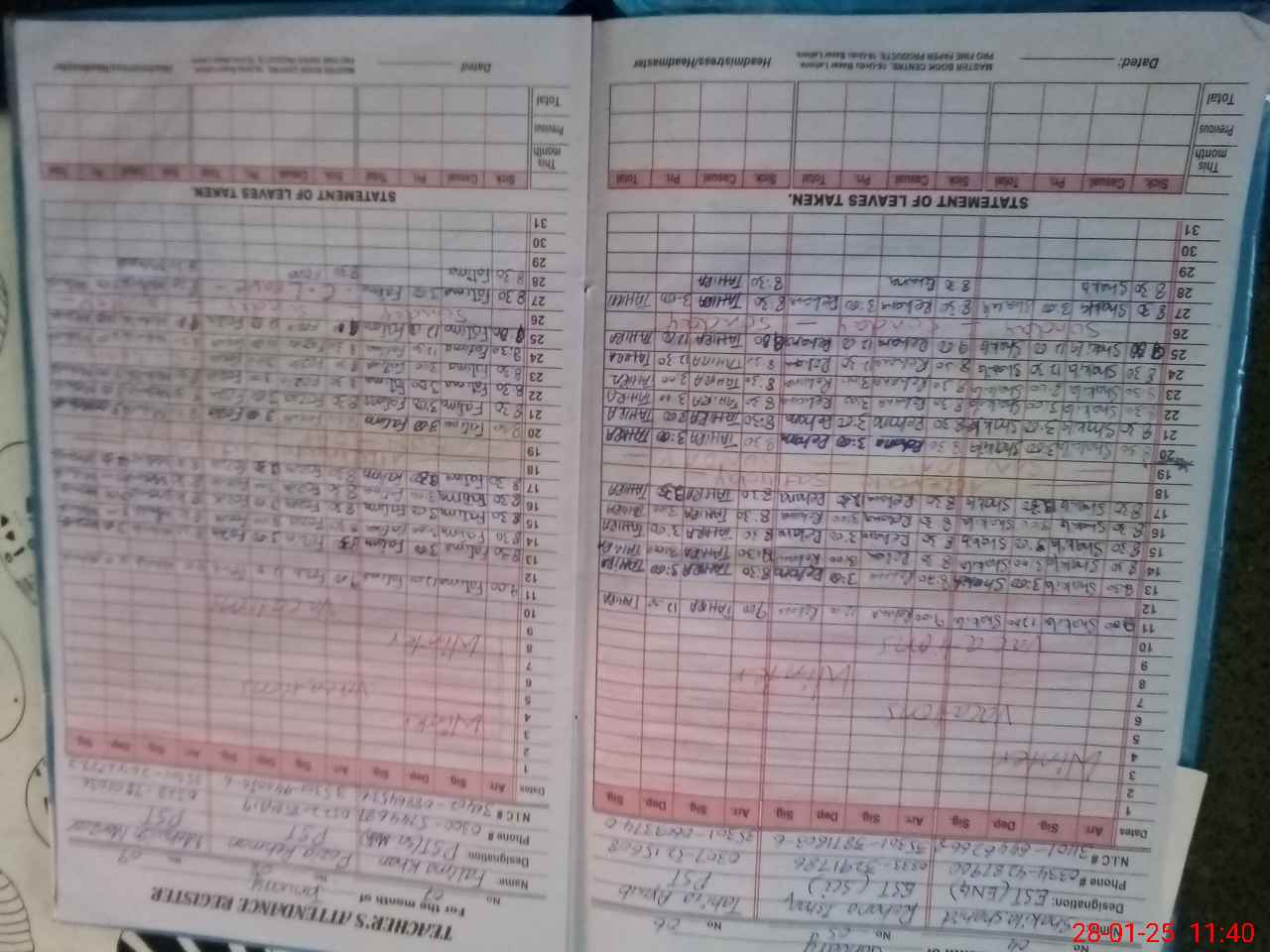 | CNIC | Full Name | Designation | R/C | Absence During Last Calender Month |