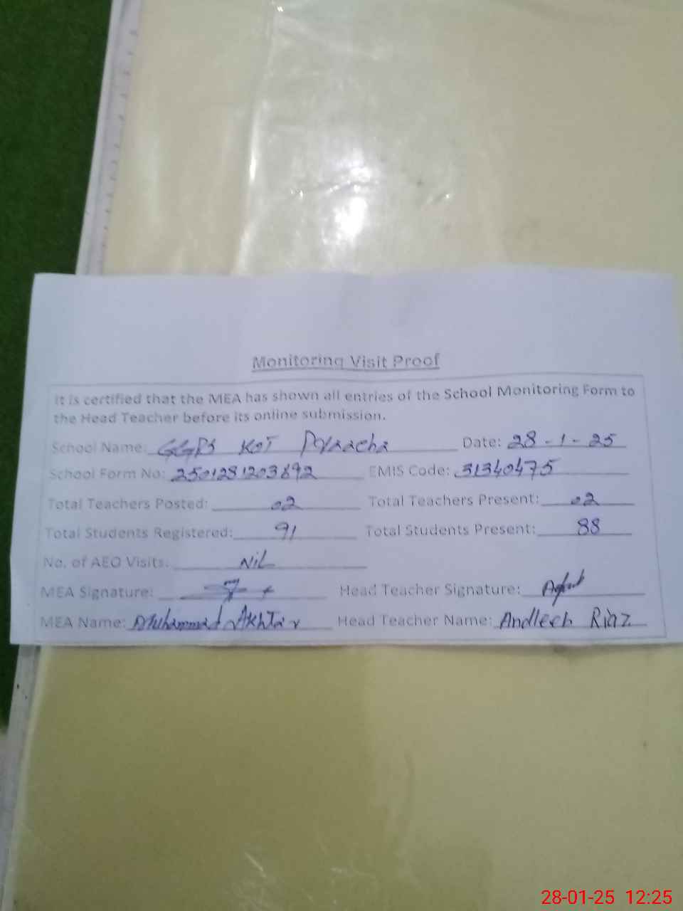 | EMIS Code: 31340475 | Name of School: GGPS KOT PRAACHA | |||