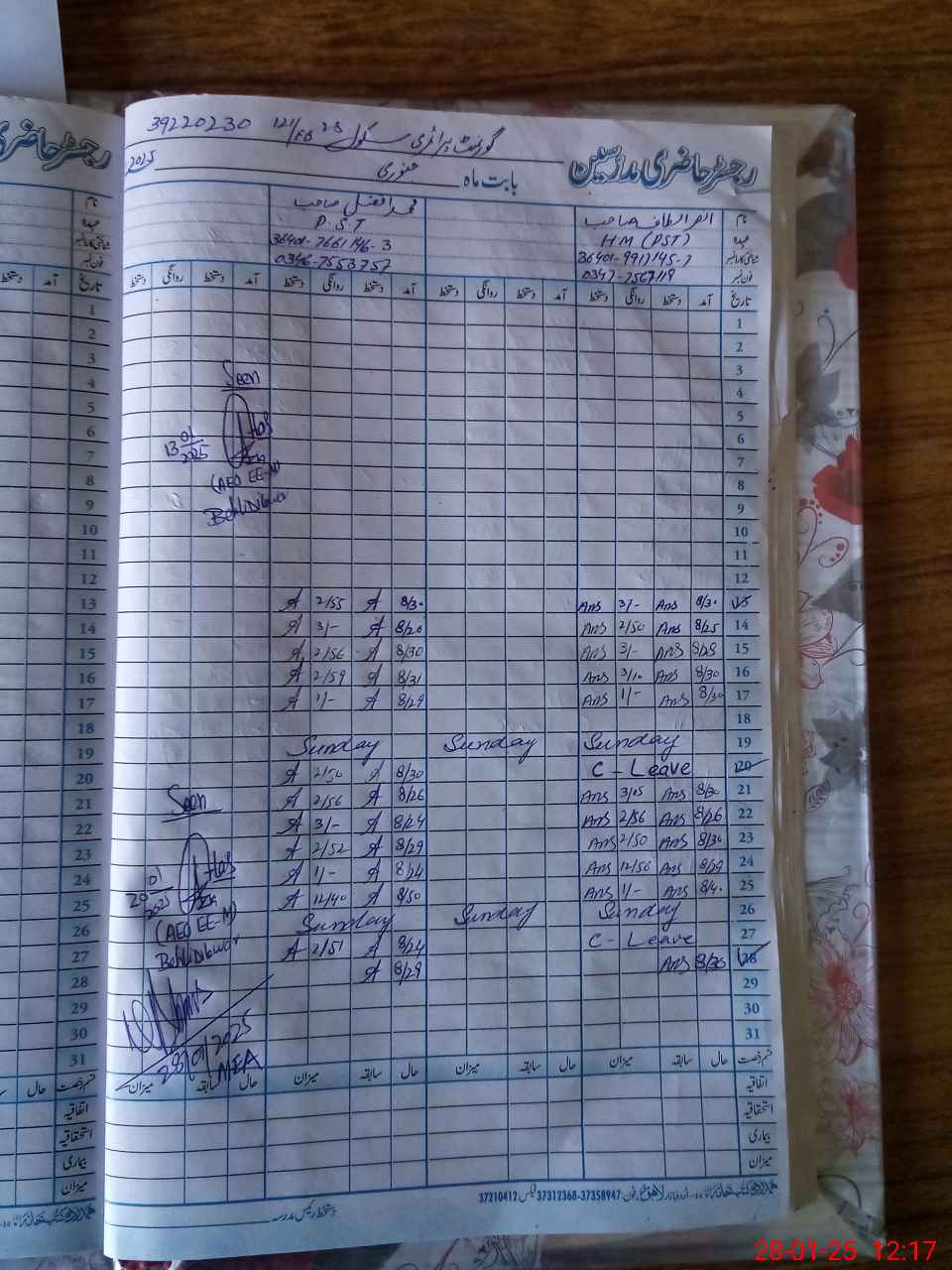 | Name: AN**** AL**** Designation: (School Headmaster's/Headmistress's) PST Phone/Cell Number: 03**** |