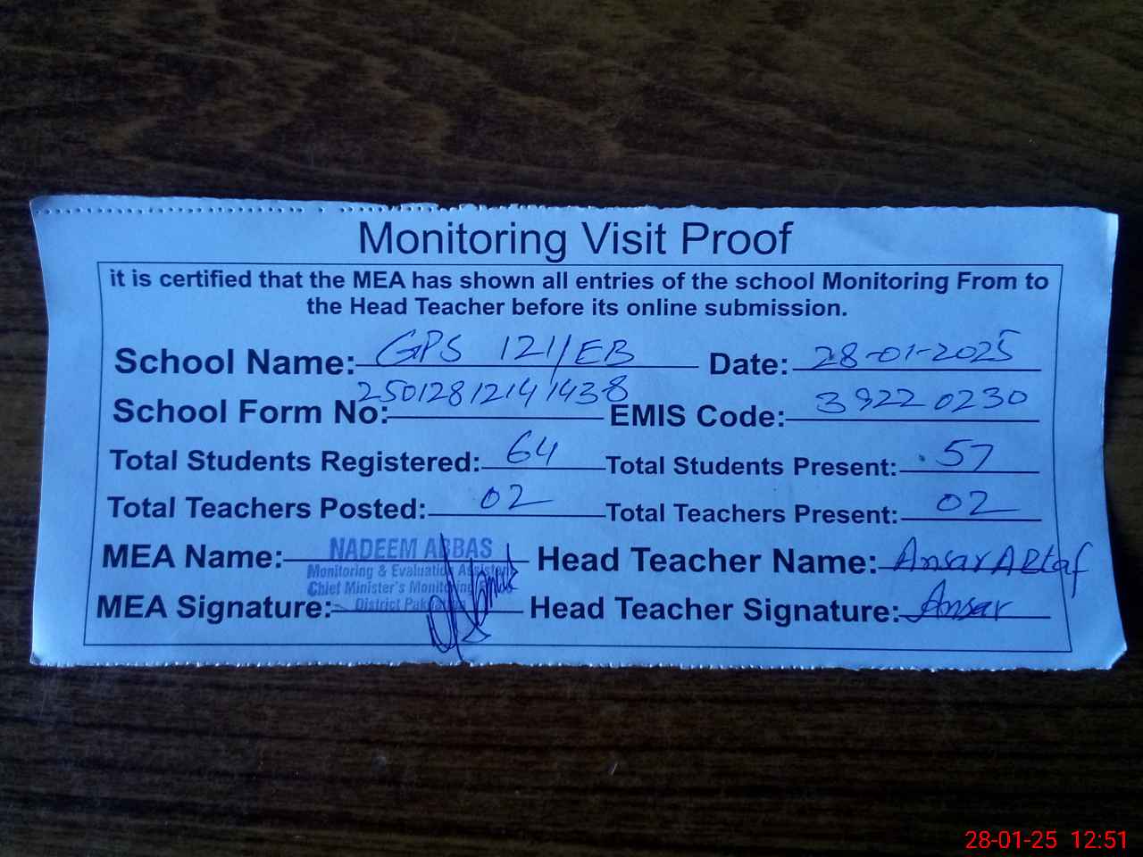 | EMIS Code: 39220230 | Name of School: GPS 121/EB | |||