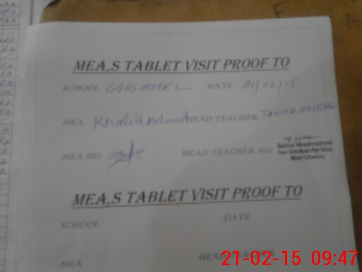 | Attendance Register | Head Teacher | MEA with School | Visit Proof |
