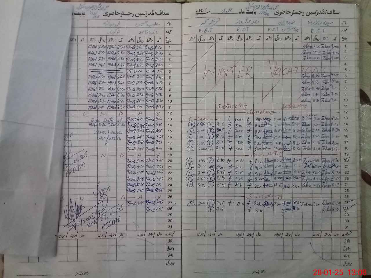 | CNIC | Full Name | Designation | R/C | Absence During Last Calender Month |