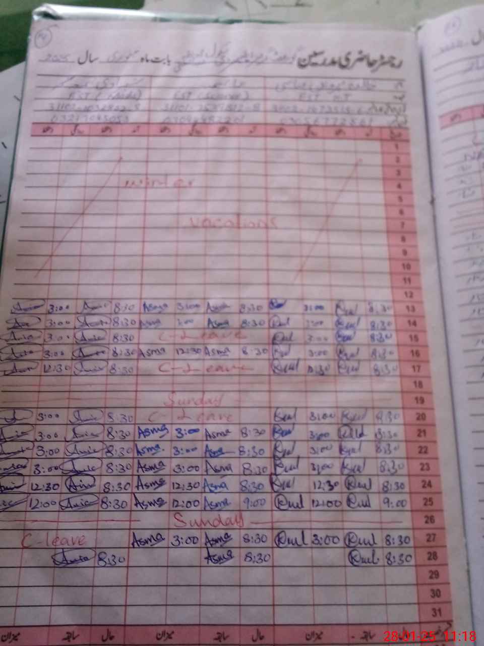 | Leave | Duty | Absent | Maternity | Medical | Ex- Pak |