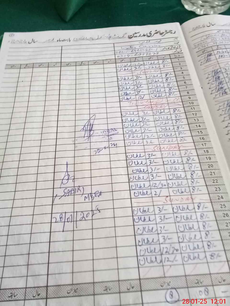 | CNIC | Full Name | Designation | R/C | Absence During Last Calender Month |