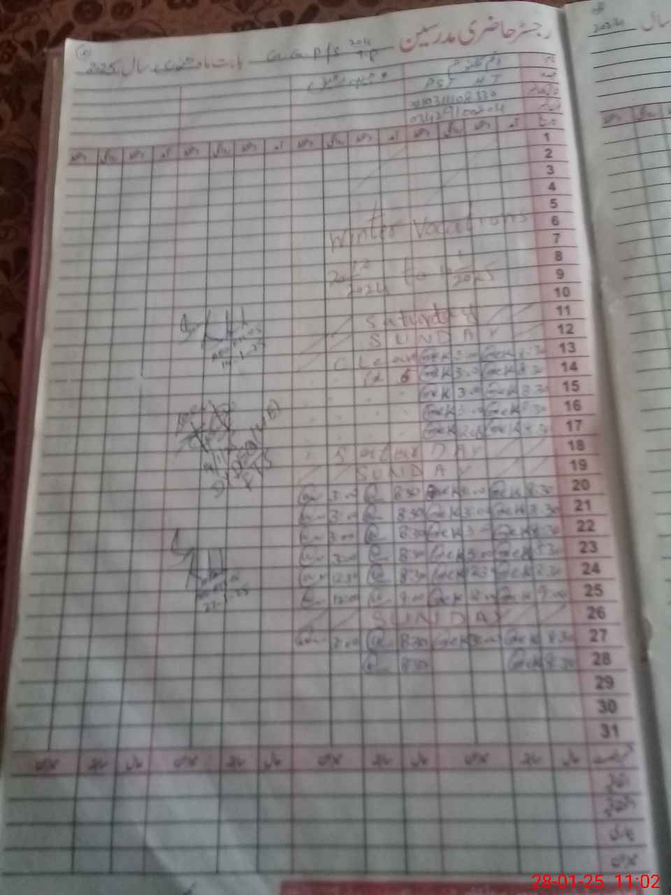 | CNIC | Full Name | Designation | R/C | Absence During Last Calender Month |