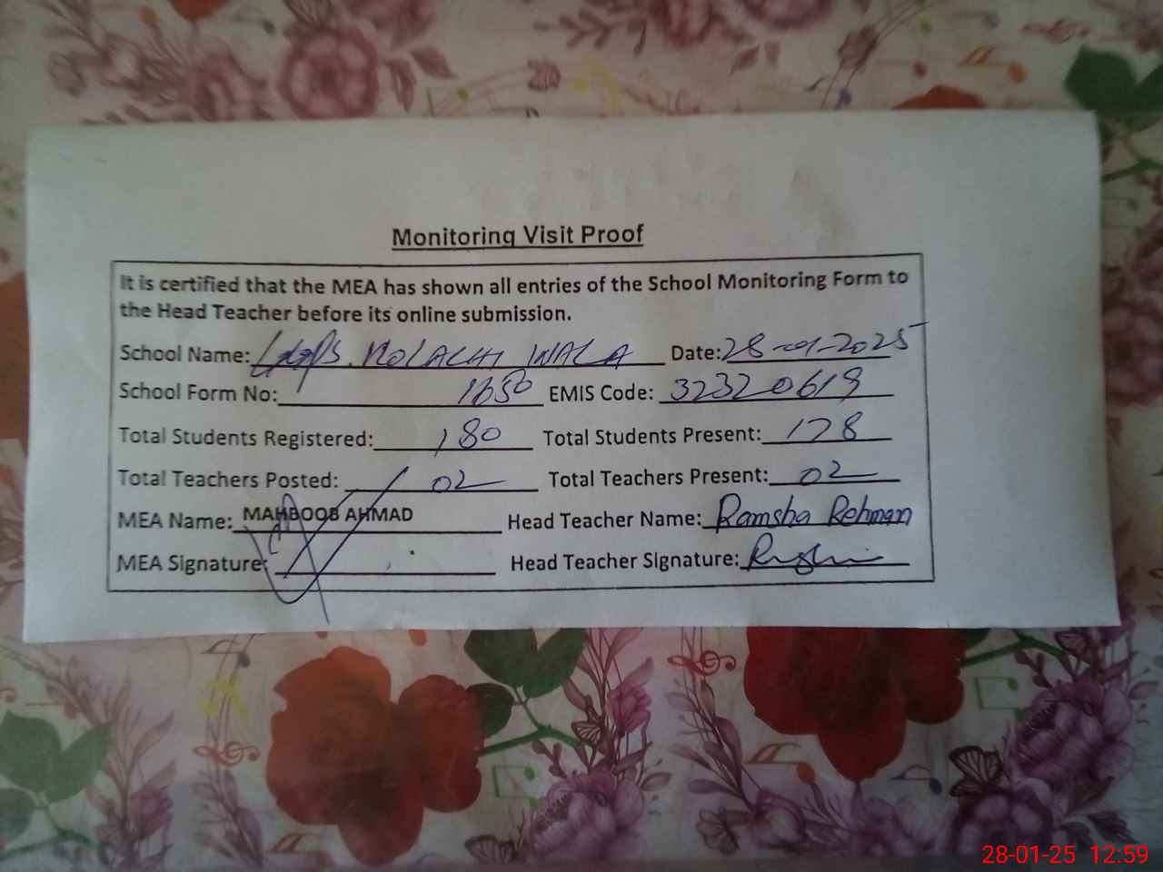 | EMIS Code: 32320619 | Name of School: GGPS KOLACHI WALA | |||