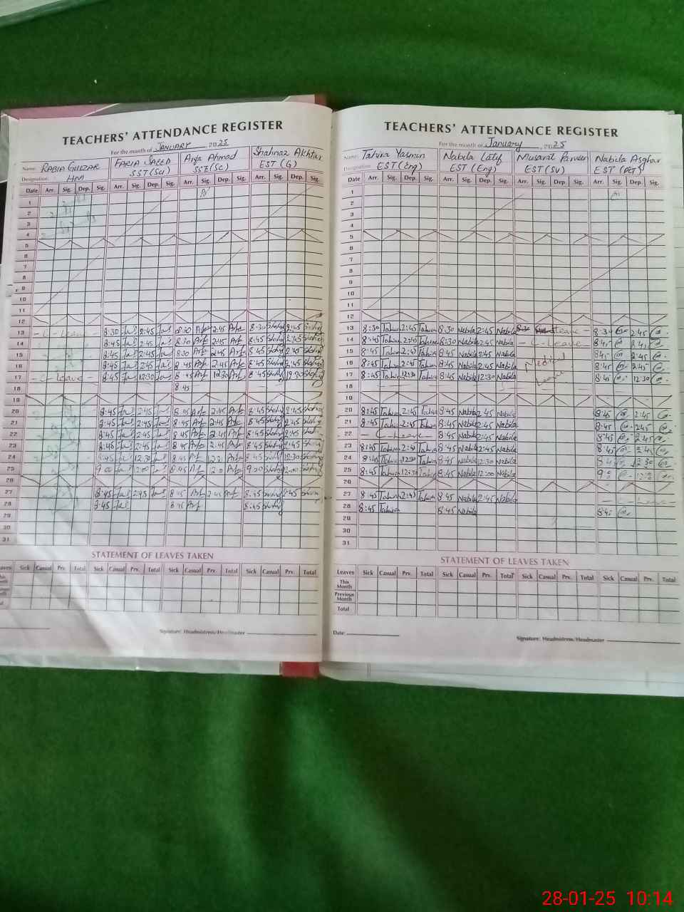 | 31**** | Ta**** Ar**** | PST | Regular | 0 | 0 | 0 | 0 | 0 | 0 | 0 | 0 | 0 | Absent (Un-Authorized) |