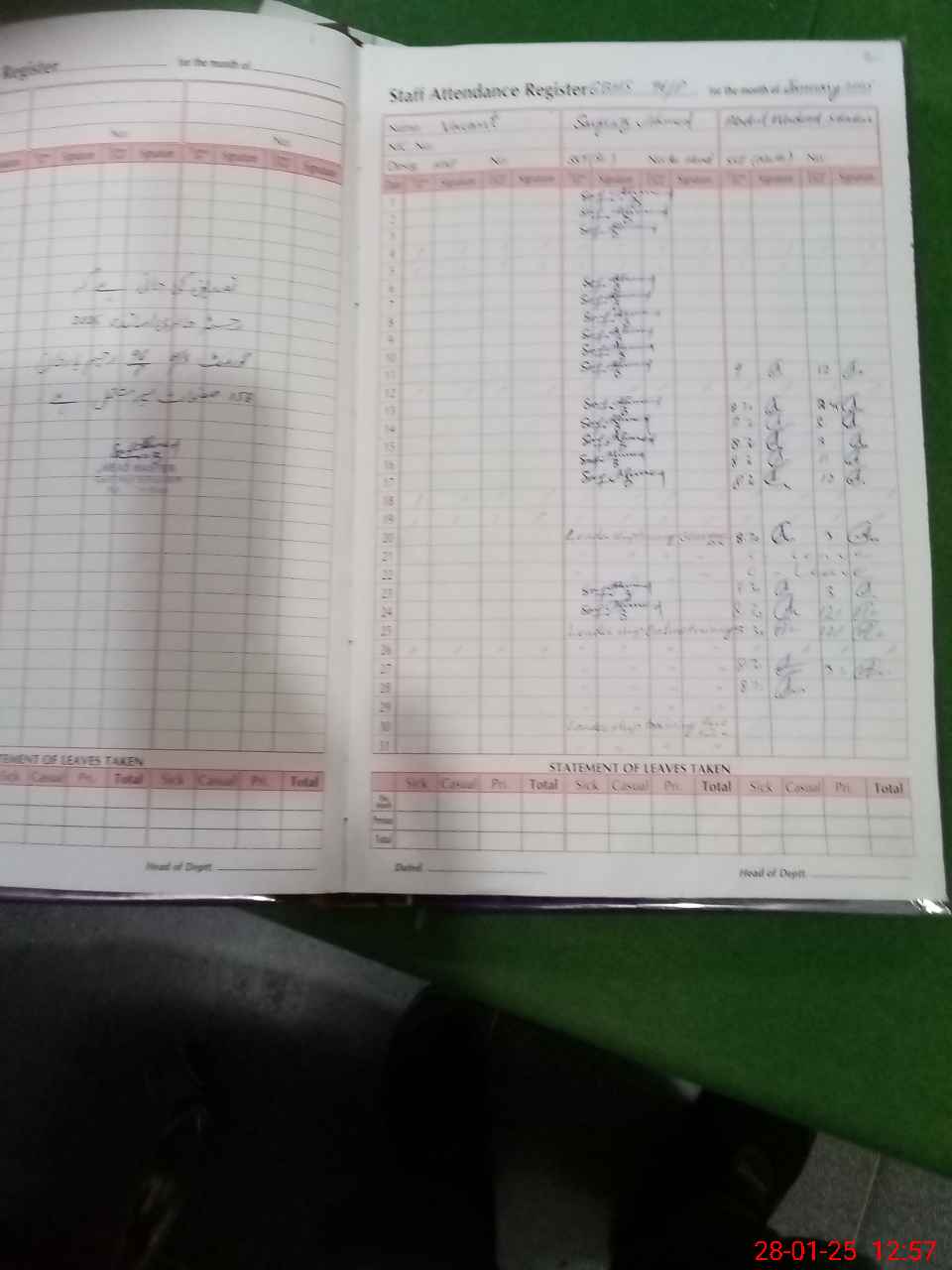 | Leave | Duty | Absent | Maternity | Medical | Ex- Pak |