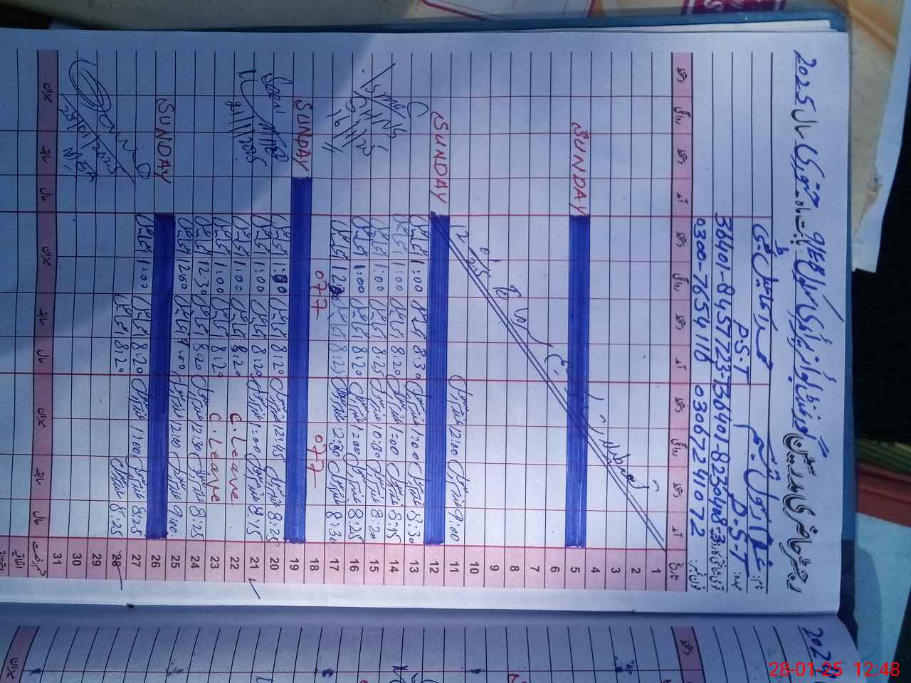 | Leave | Duty | Absent | Maternity | Medical | Ex- Pak |