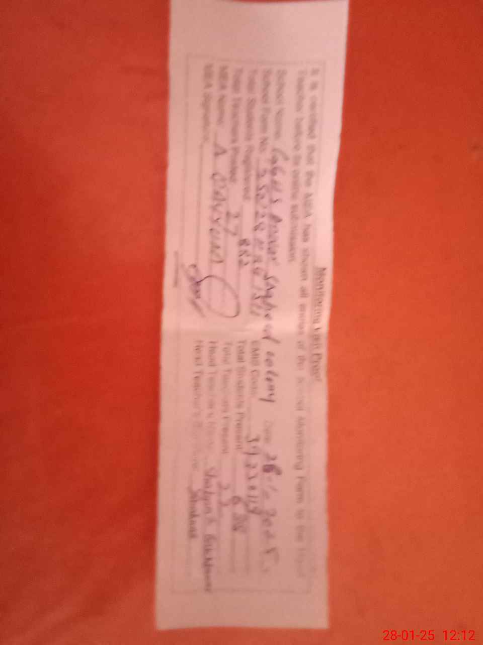 | Monitoring Date: 28-01-2025 | Start Time: 28-01-2025 11:34 AM | End Time: 28-01-2025 12:12 PM | Name of MEA: AB**** QA**** | |