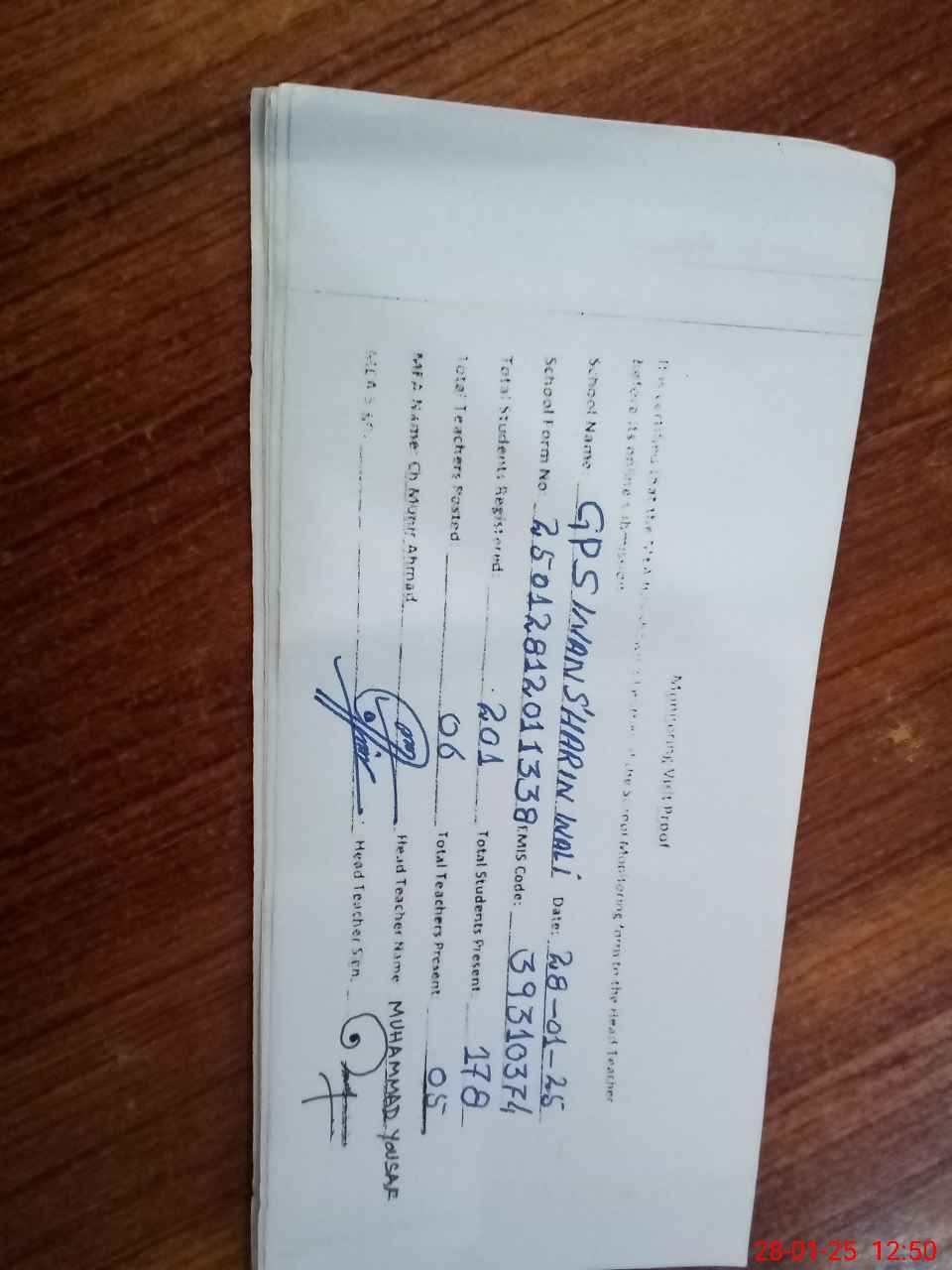 | Attendance Register | Head Teacher | MEA with School | Visit Proof |