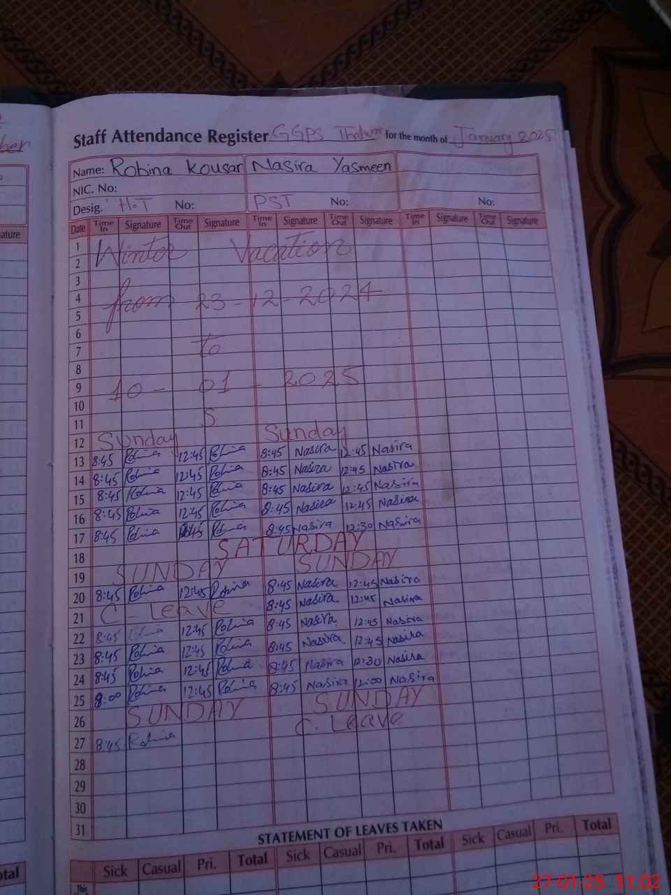 | 31**** | Na**** Ja**** | PST | Regular | 2 | 0 | 0 | 0 | 0 | 0 | 0 | 0 | 2 | Casual |