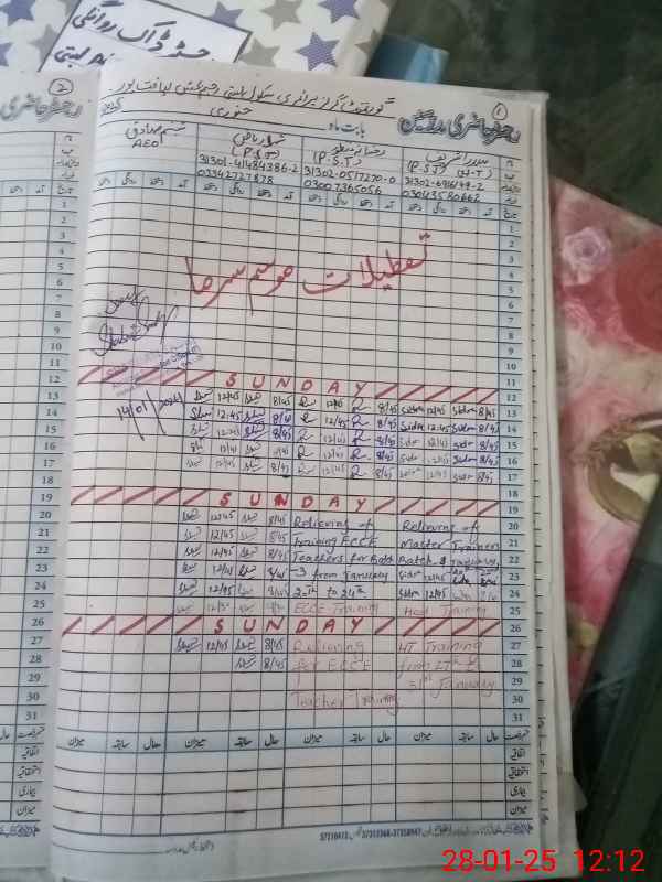 | Name: SI**** SH**** Designation: (School Headmaster's/Headmistress's) PST/PTC/JV Phone/Cell Number: 03**** |