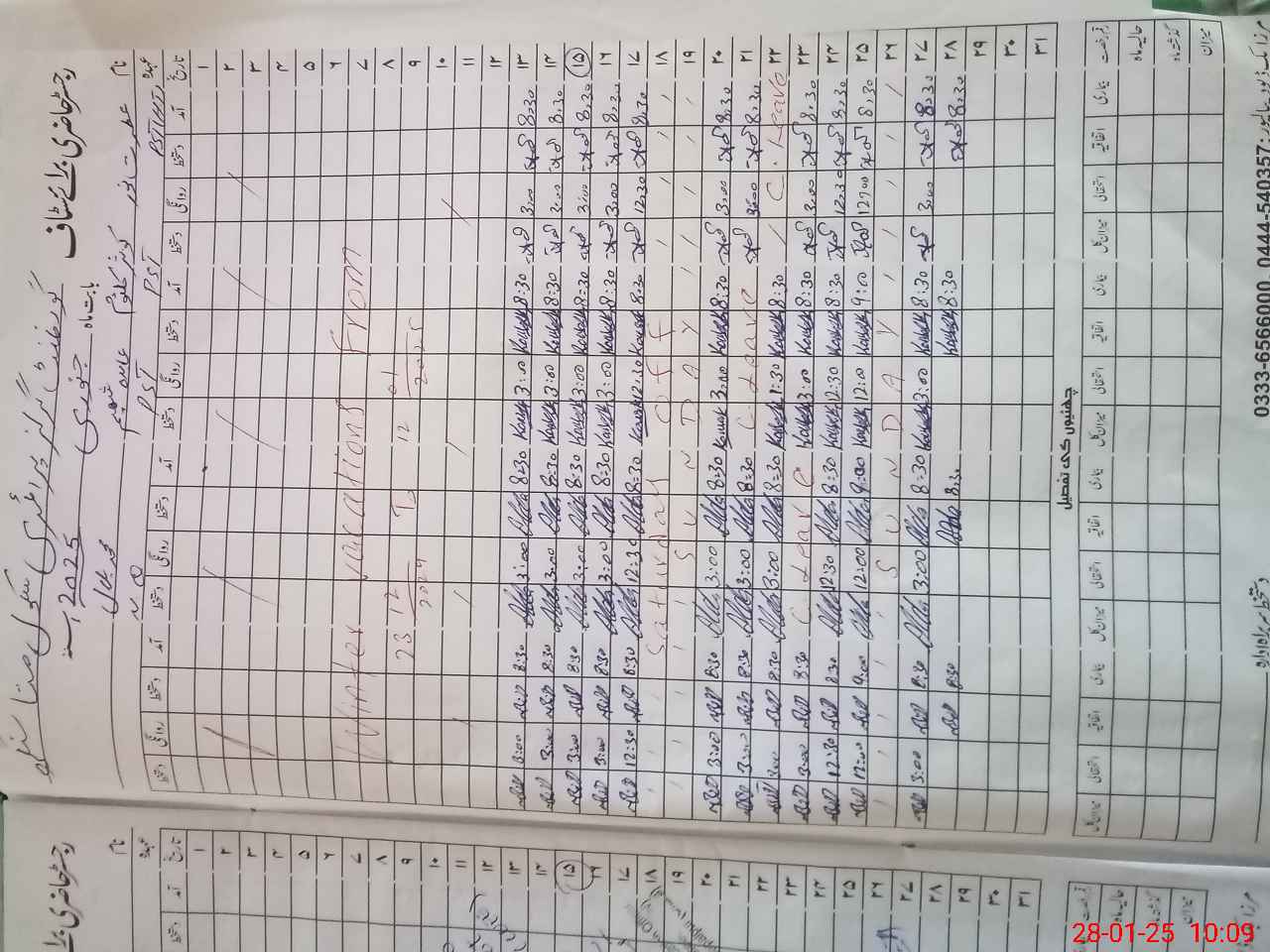 | CNIC | Full Name | Designation | R/C | Absence During Last Calender Month |