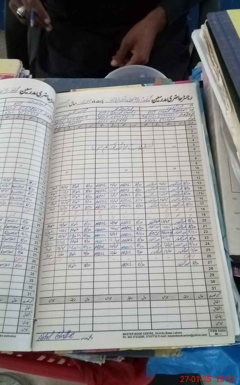 | CNIC | Full Name | Designation | R/C | Absence During Last Calender Month |