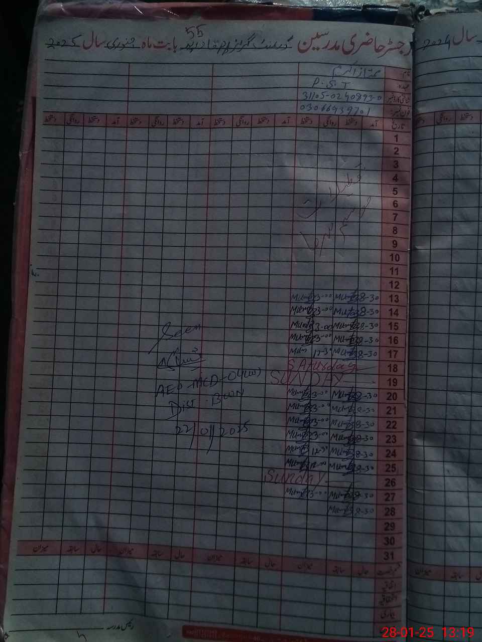 | Name: Mu**** Ak**** Designation: (School Headmaster's/Headmistress's) PST Phone/Cell Number: 03**** |