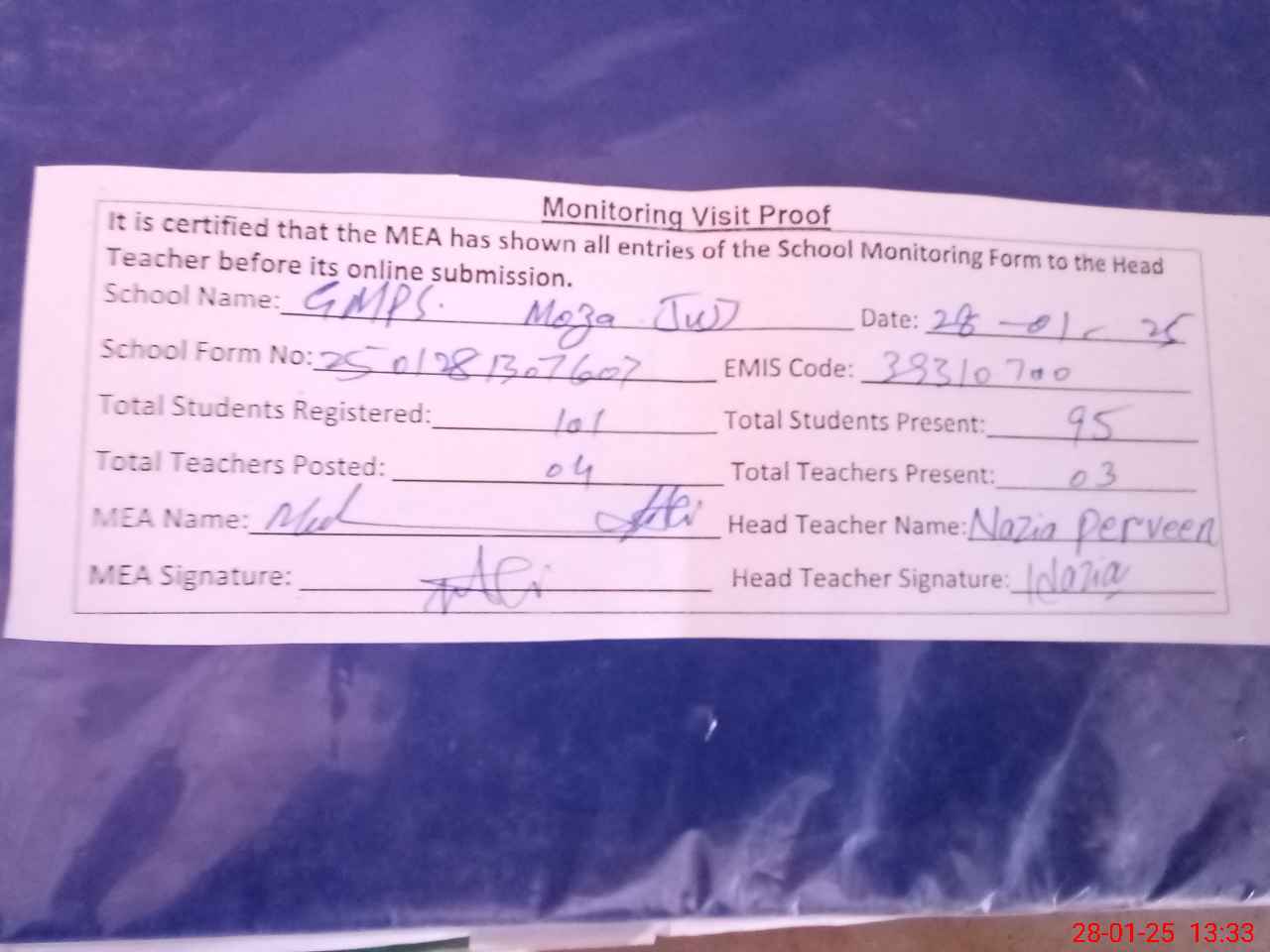 | Certified that this School was Inspected by the Undersigned MEA/DMO Today and the Information Stated Above is as Per Record. | |||||