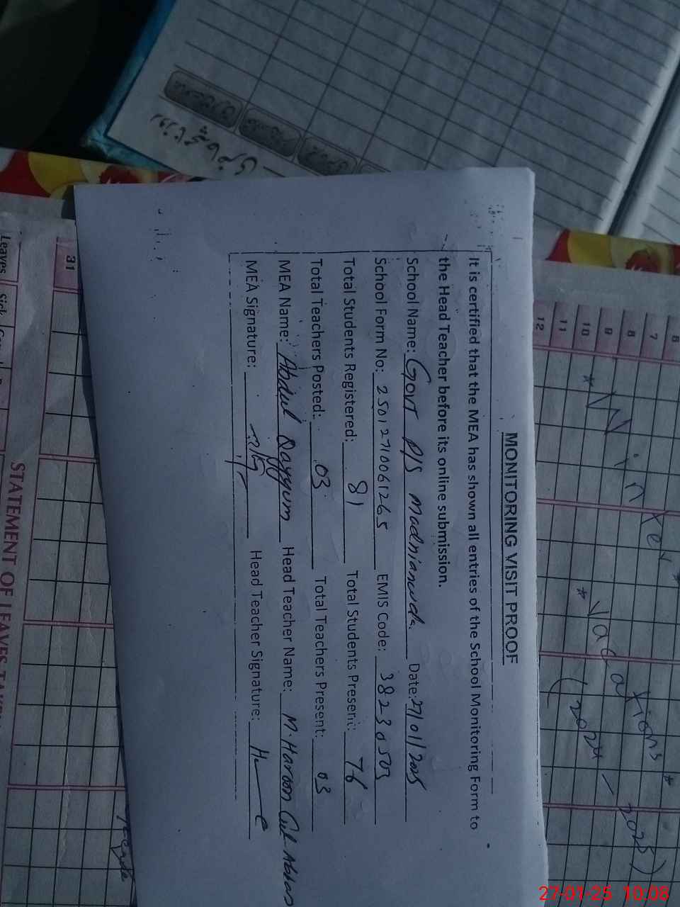 | EMIS Code: 38230503 | Name of School: GPS MADNIAN WALA | |||