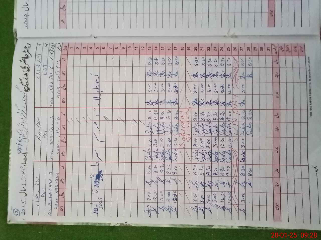 | CNIC | Full Name | Designation | R/C | Absence During Last Calender Month |