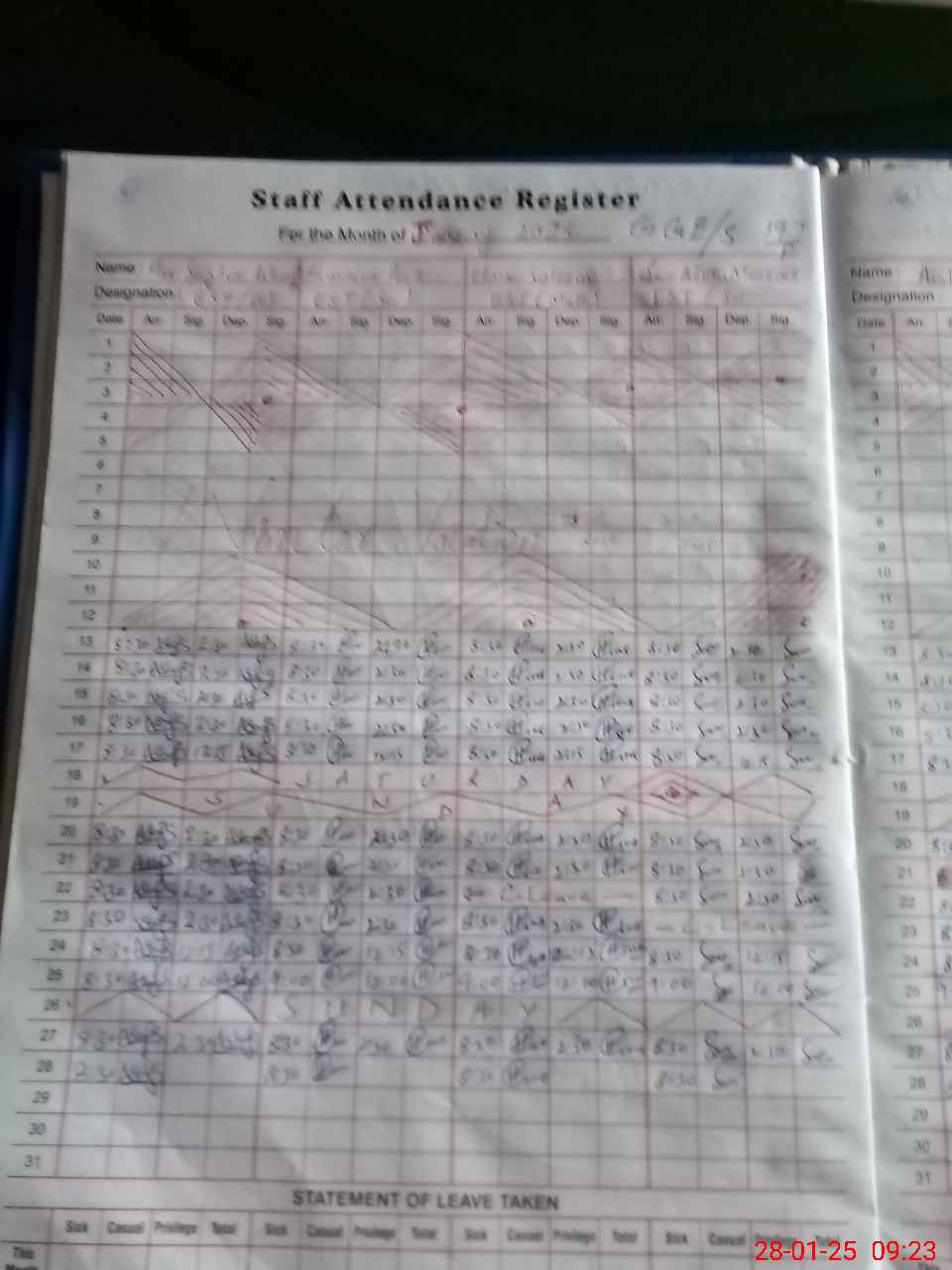 | CNIC | Full Name | Designation | R/C | Absence During Last Calender Month |