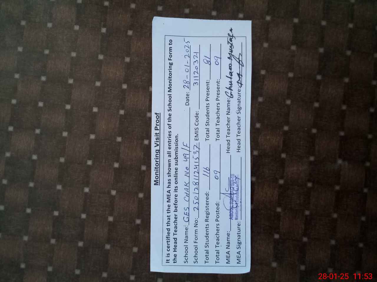 | EMIS Code: 31120321 | Name of School: GES CHAK NO. 49/F | |||