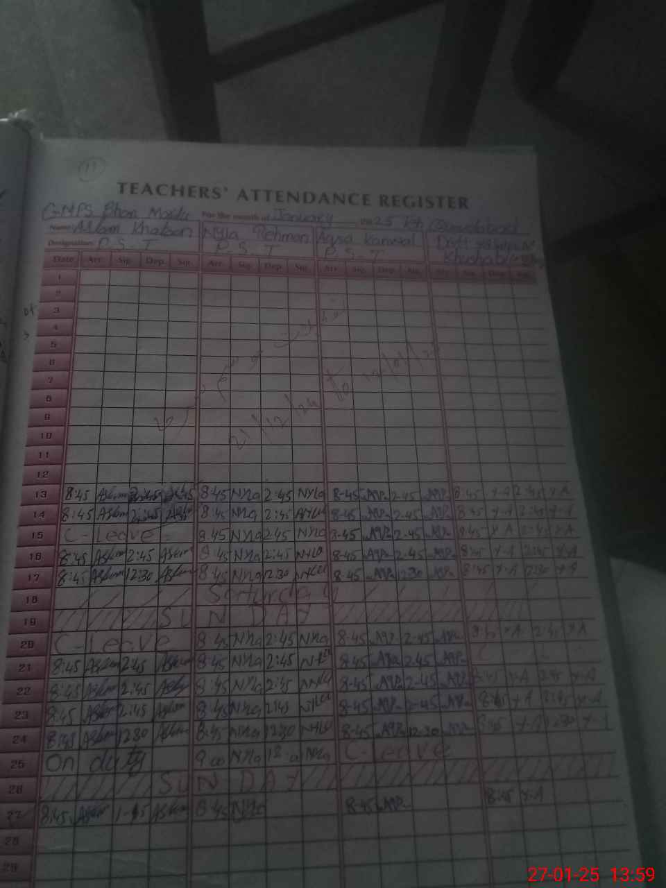 | CNIC | Full Name | Designation | R/C | Absence During Last Calender Month |