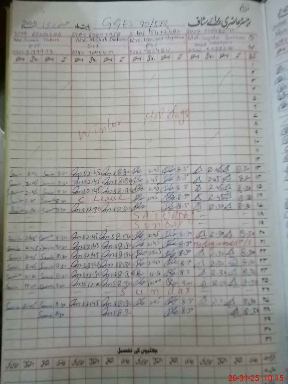 | CNIC | Full Name | Designation | R/C | Absence During Last Calender Month |