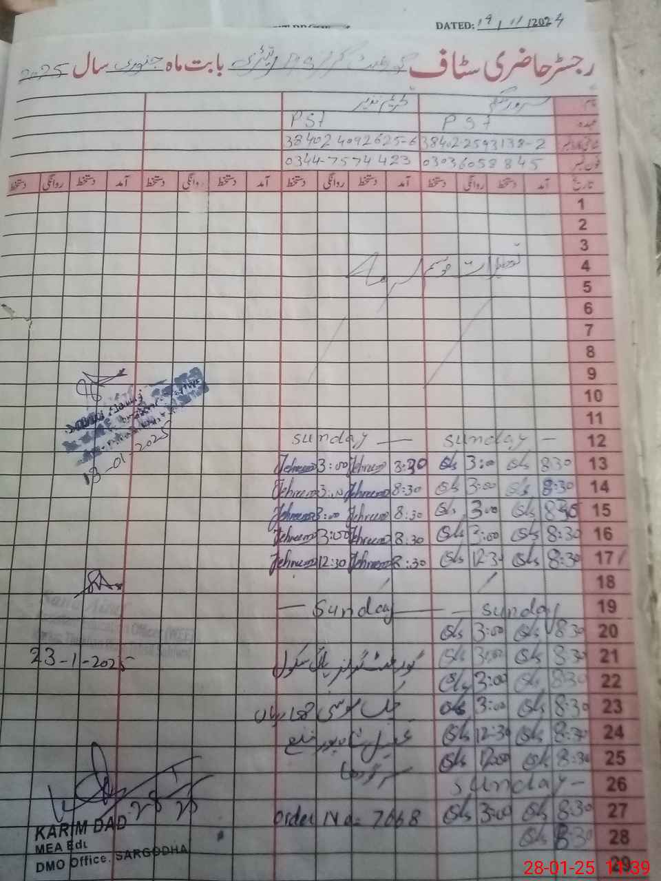 | Remarks (Use Separate Page if Required): PST Tehreem Nazir attached to GGHS Chak Musa tehsil Shahpur wef 16 January 2025 | |||||