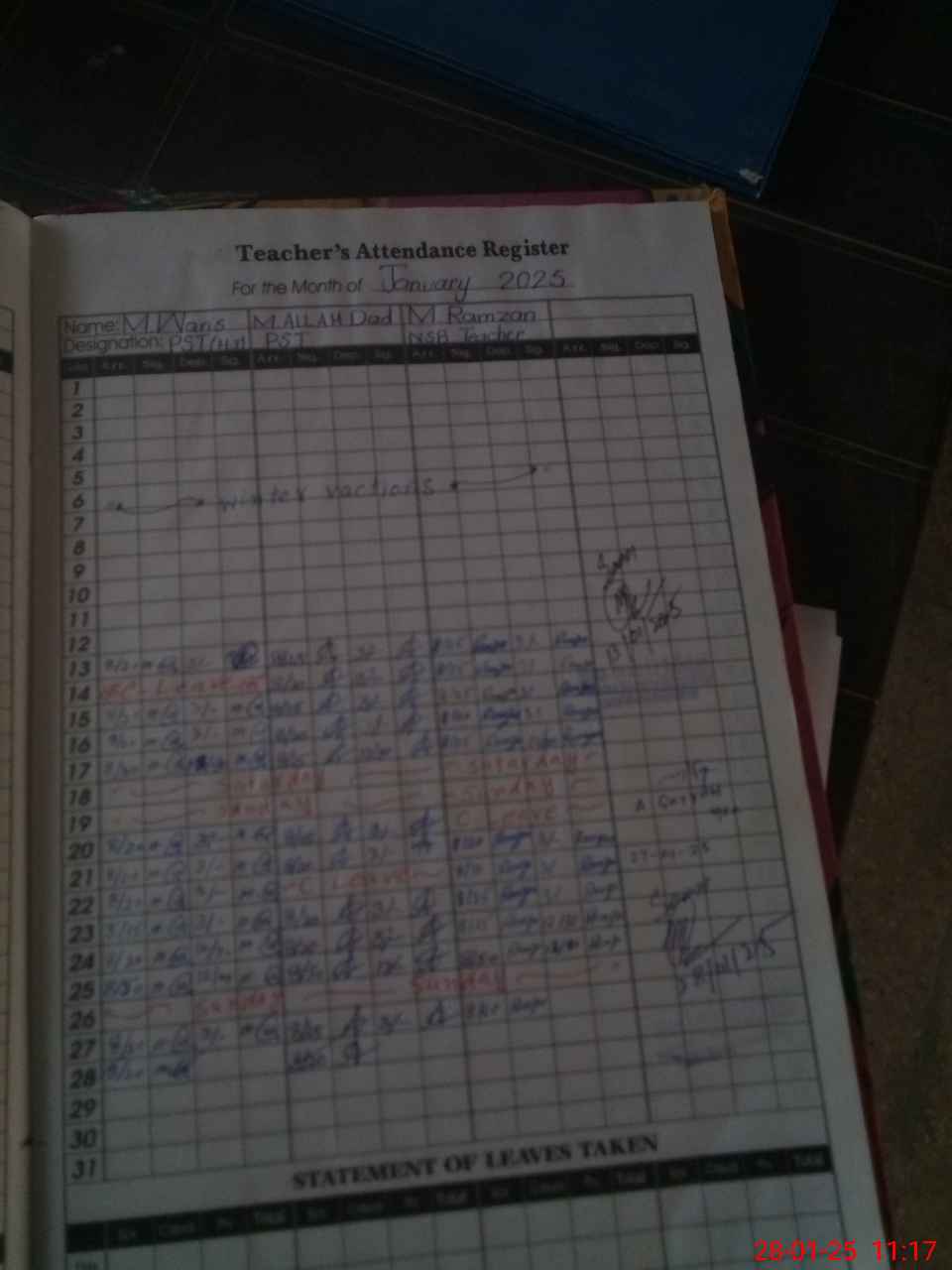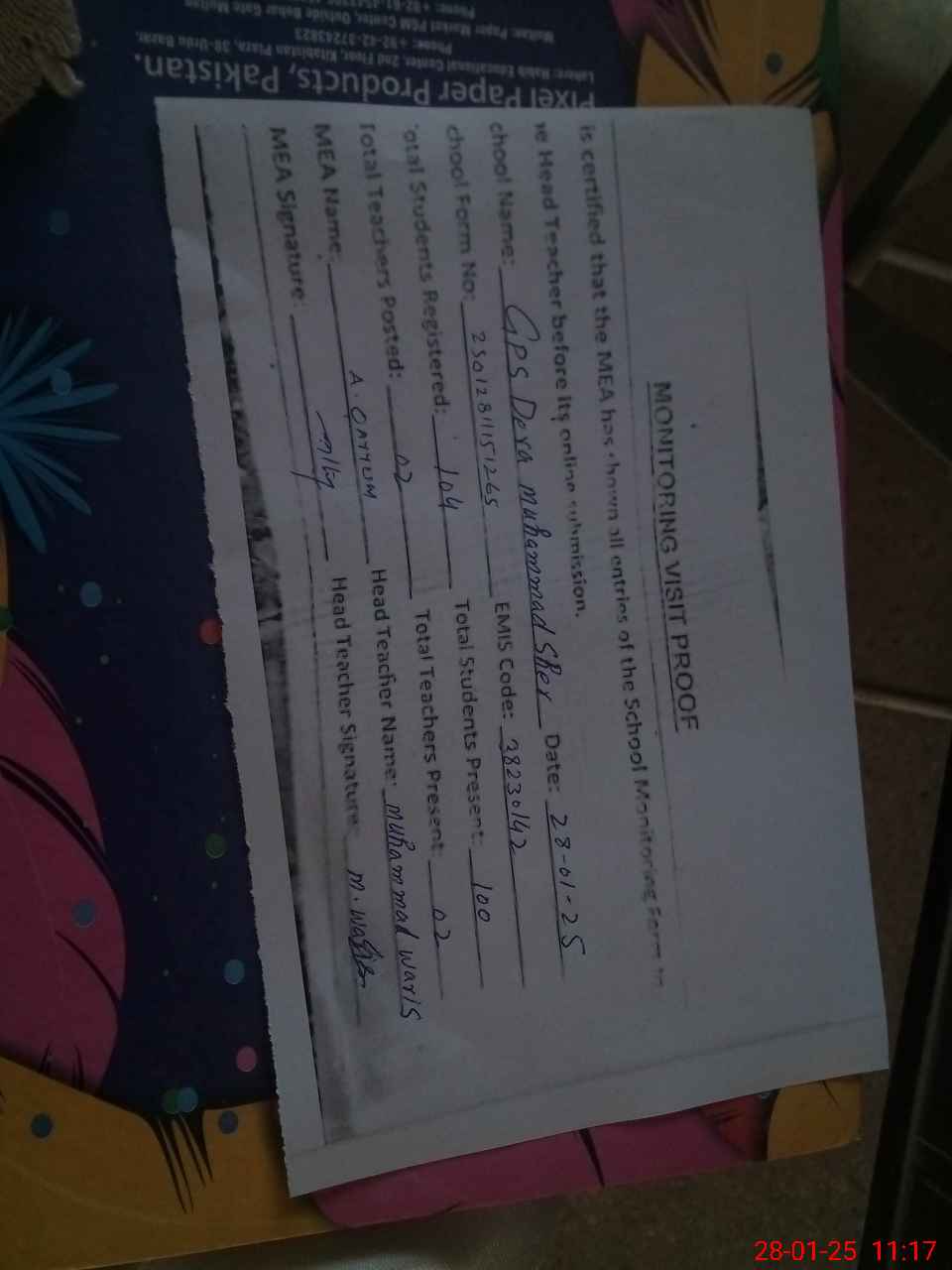 | Attendance Register | Head Teacher | MEA with School | Visit Proof |