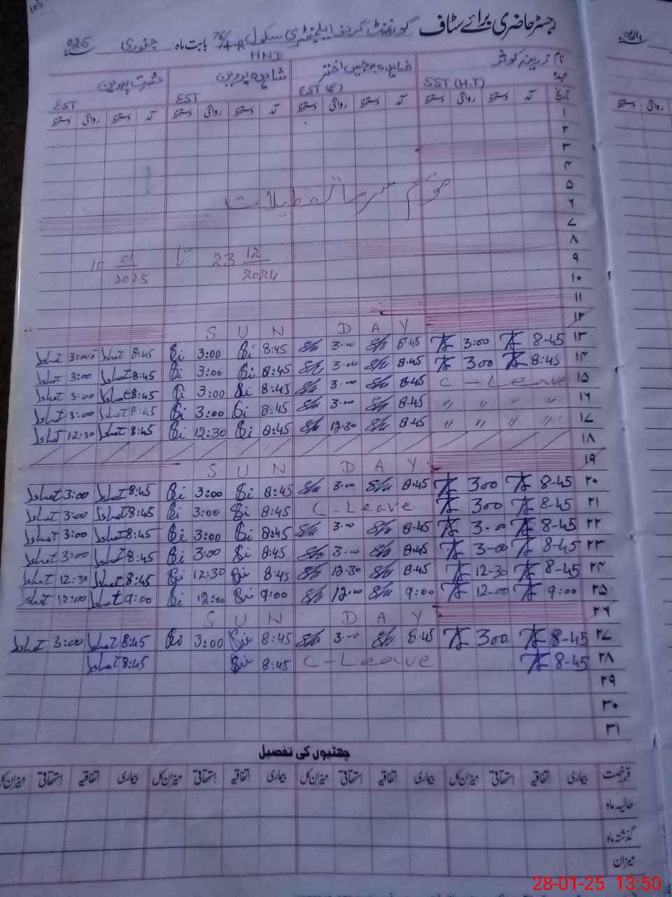 | CNIC | Full Name | Designation | R/C | Absence During Last Calender Month |