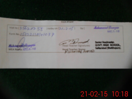| Name: If**** Ah**** Na**** Designation: (School Headmaster's/Headmistress's) SSS Phone/Cell Number: 03**** |