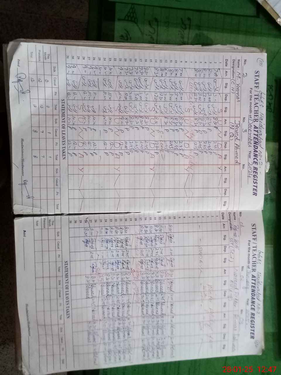 | CNIC | Full Name | Designation | R/C | Absence During Last Calender Month |