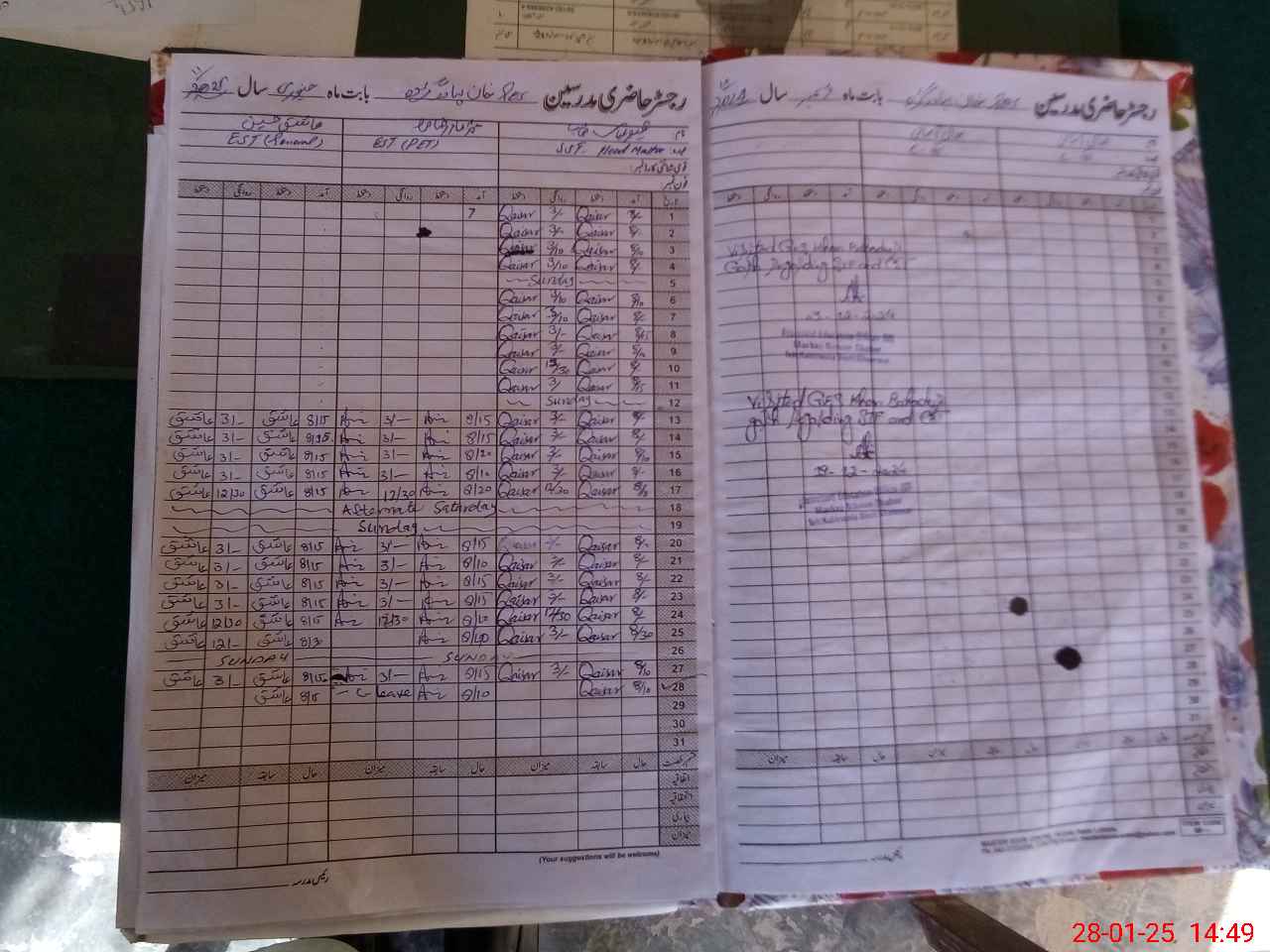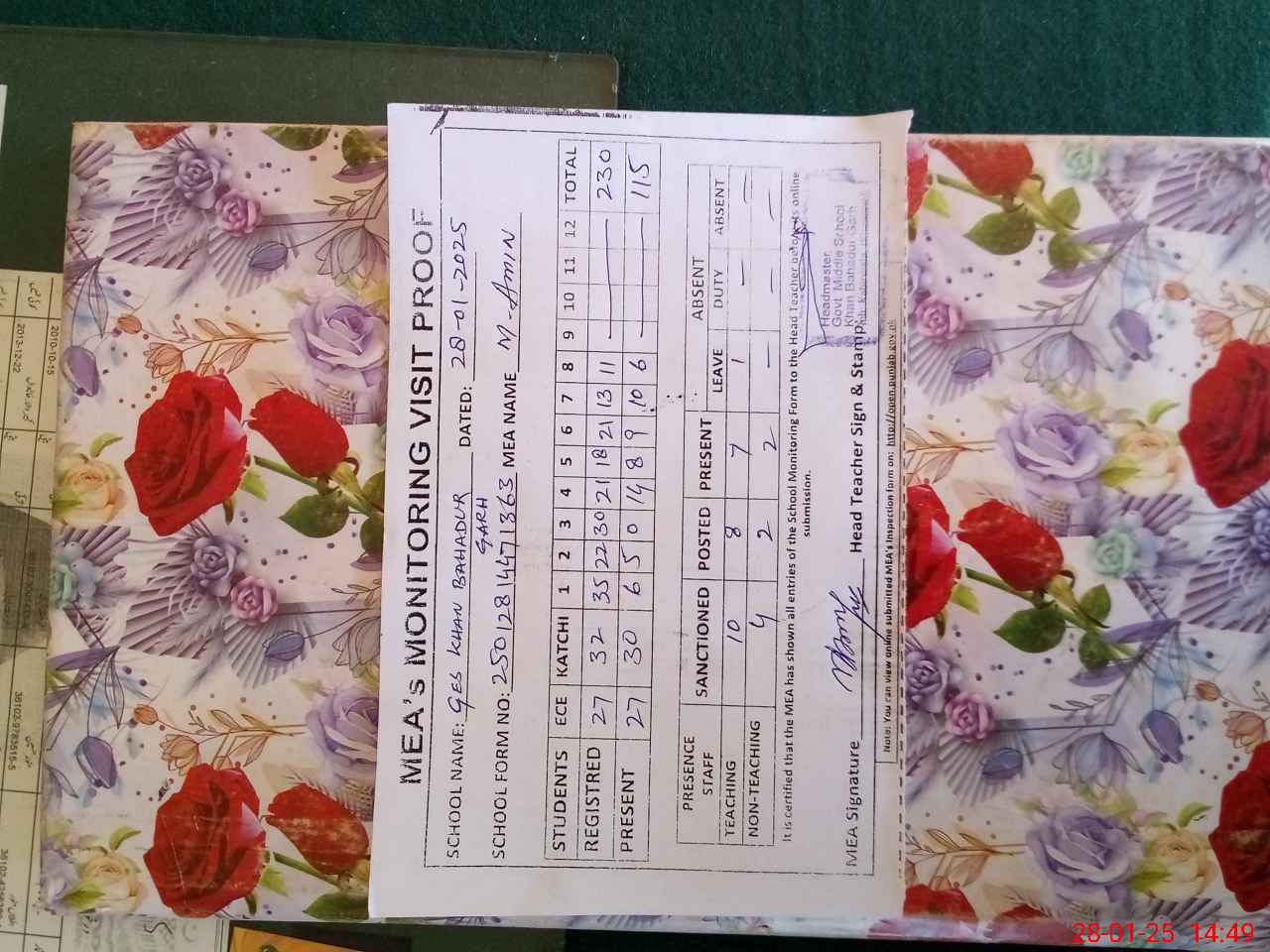 | Attendance Register | Head Teacher | MEA with School | Visit Proof |