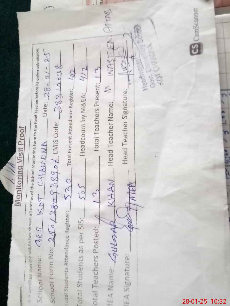 | EMIS Code: 38310038 | Name of School: GES KOT CHANDNA | |||