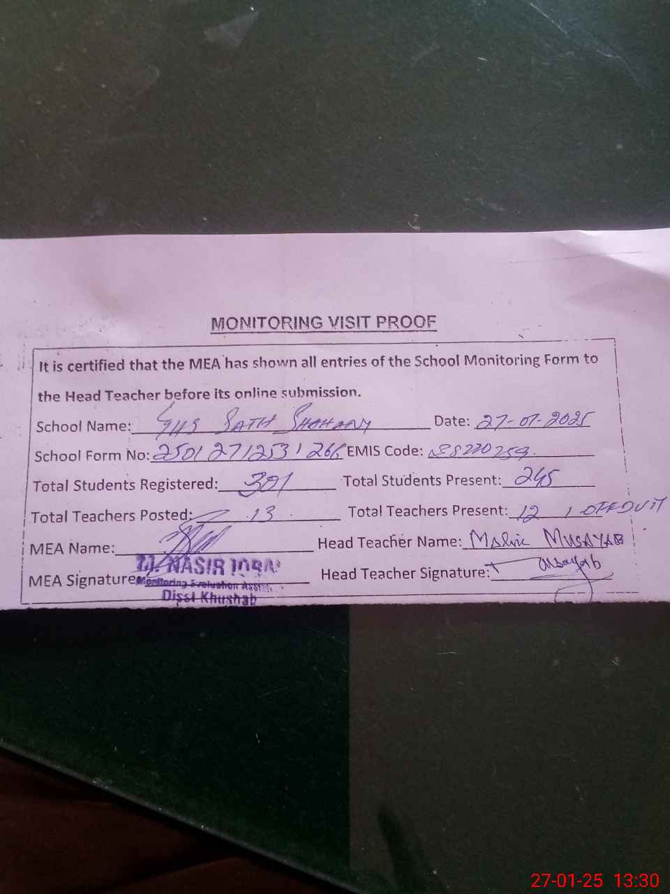 | EMIS Code: 38220259 | Name of School: GHS SATH SHAHANI | |||