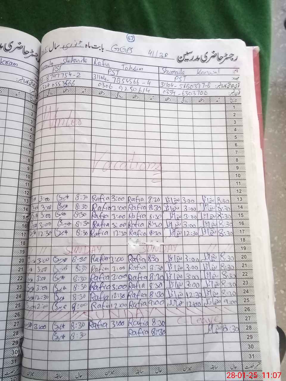 | CNIC | Full Name | Designation | R/C | Absence During Last Calender Month |