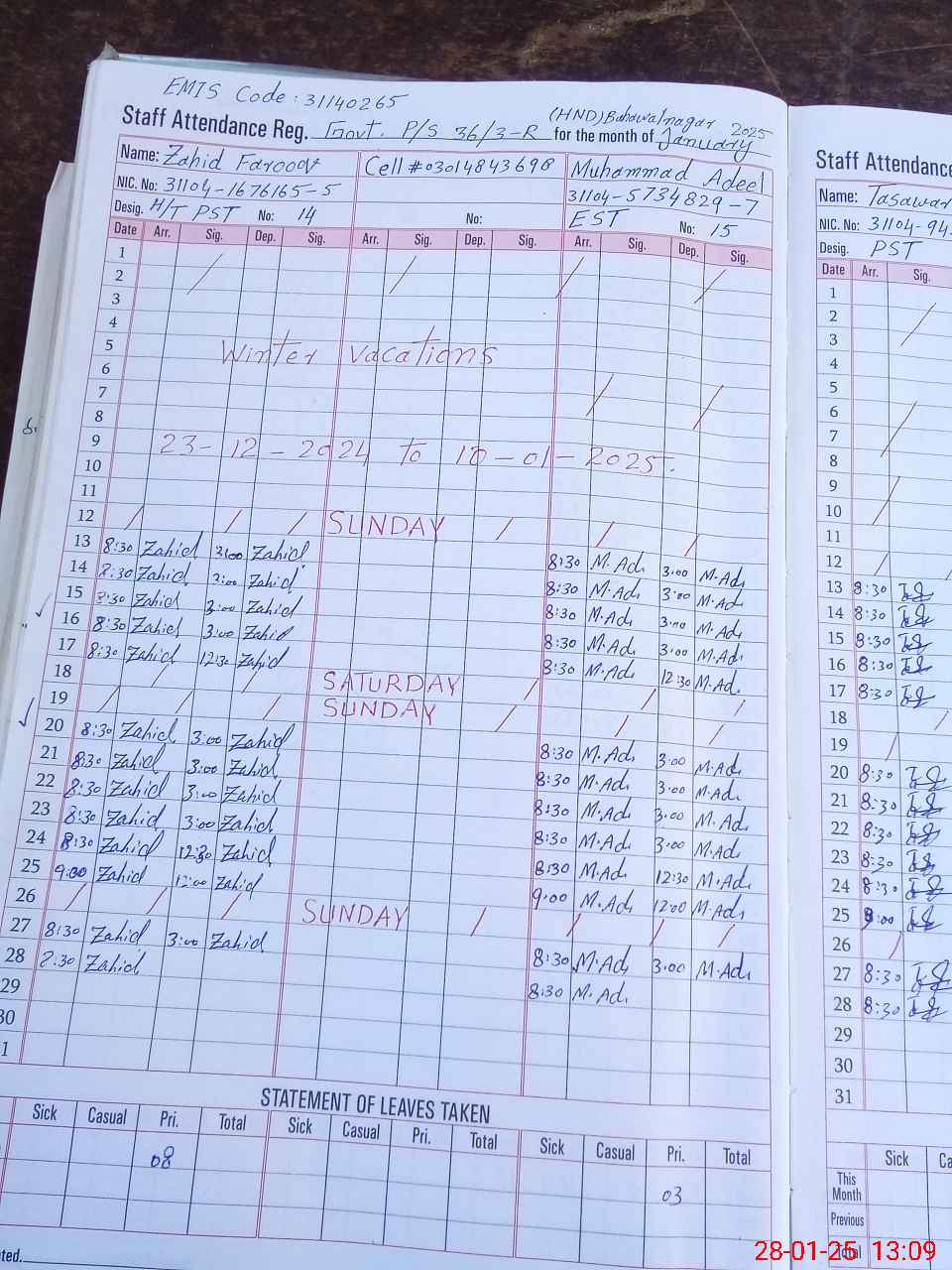 | Name: Za**** Fa**** Designation: (School Headmaster's/Headmistress's) PST Phone/Cell Number: 03**** |