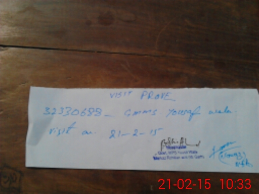 | Monitoring Date: 21-02-2015 | Start Time: 21-02-2015 10:27 AM | End Time: 21-02-2015 10:37 AM | Name of MEA: Na**** Ah**** Kh**** | |