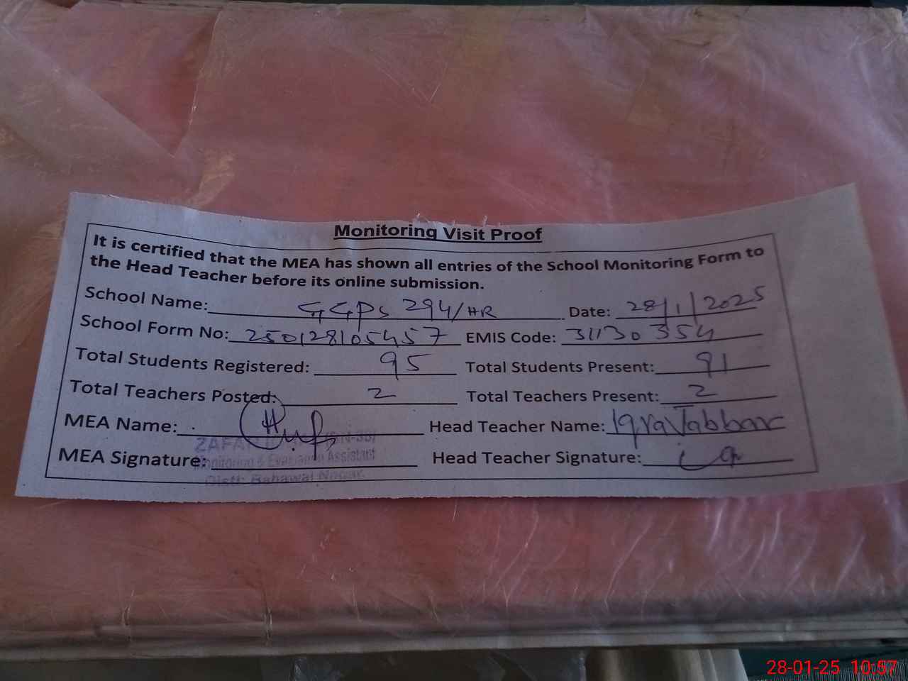 | EMIS Code: 31130354 | Name of School: GGPS CHAK NO 294 HR | |||