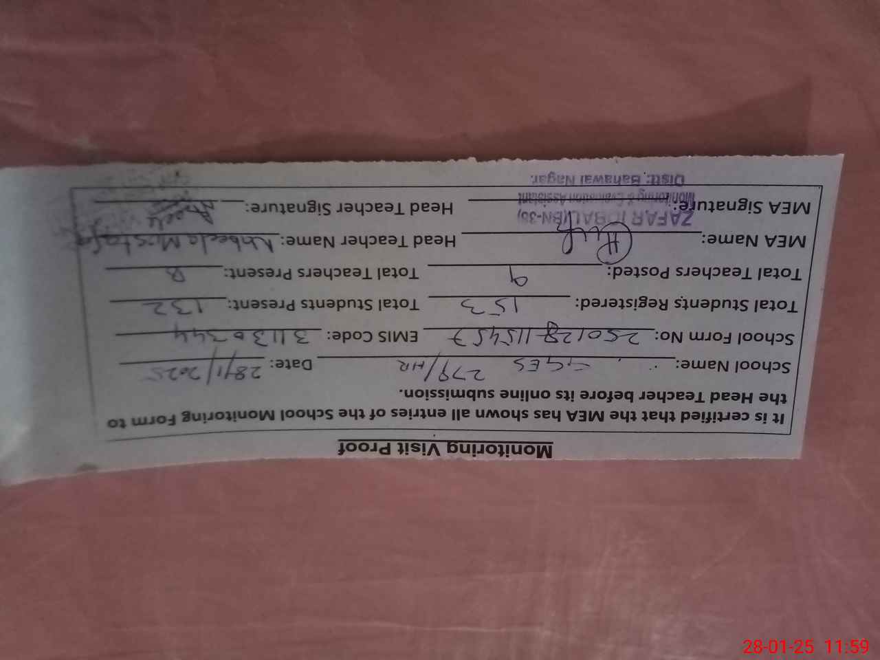 | Monitoring Date: 28-01-2025 | Start Time: 28-01-2025 11:34 AM | End Time: 28-01-2025 12:00 PM | Name of MEA: Za**** Iq**** BN**** | |