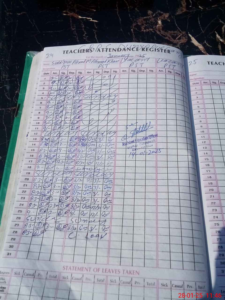 | Name: SI**** AH**** Designation: (School Headmaster's/Headmistress's) PST/PTC/JV Phone/Cell Number: 03**** |