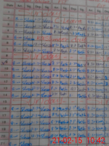 | Monitoring Date: 21-02-2015 | Start Time: 21-02-2015 10:25 AM | End Time: 21-02-2015 10:43 AM | Name of MEA: Na**** Kh**** | |