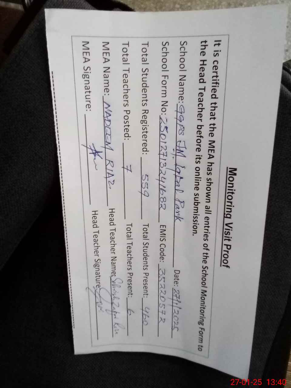 | EMIS Code: 35220572 | Name of School: GGPS JUNIOR MODEL IQBAL PARK | |||
