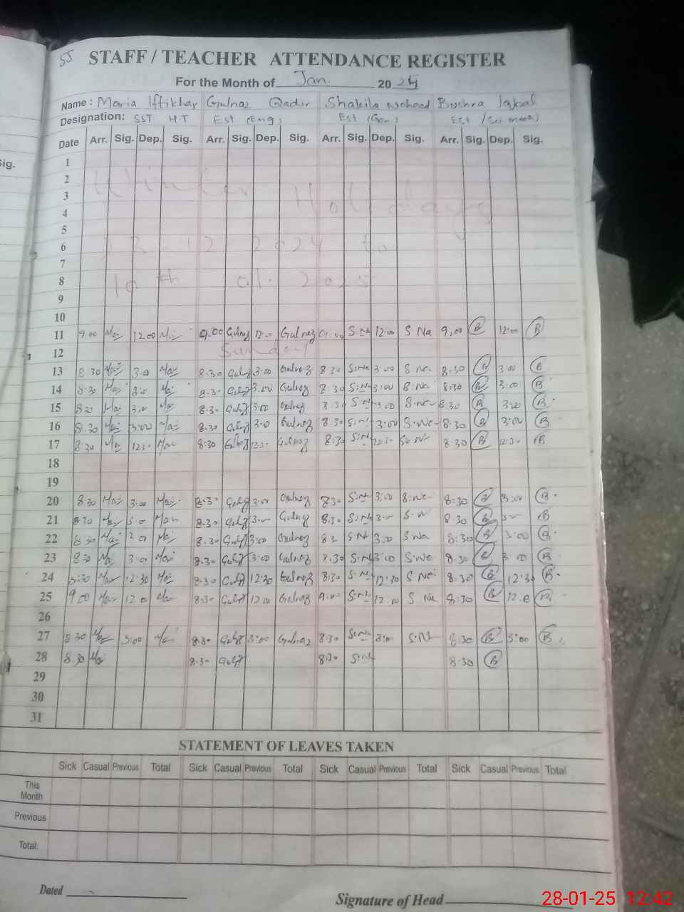 | Name: Gu**** Na**** Qa**** Designation: (School Headmaster's/Headmistress's) Incharge (EST) HEAD MISTERSS Phone/Cell Number: 03**** |