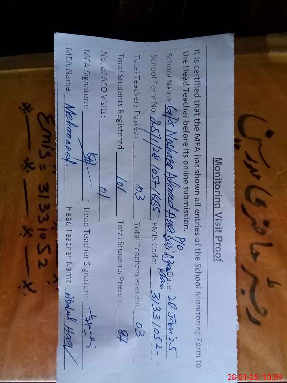 | EMIS Code: 31331052 | Name of School: GPS NOSHAHRA AHMED ANIA P/O DARI AZIM KHAN | |||