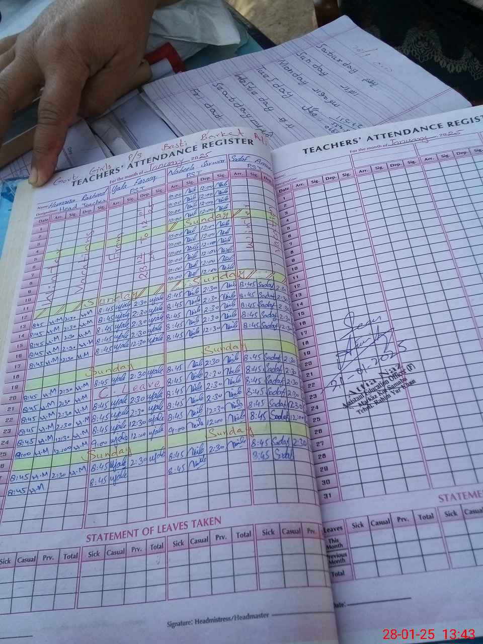 | Name: Hu**** Ra**** Designation: (School Headmaster's/Headmistress's) PST Phone/Cell Number: 03**** |