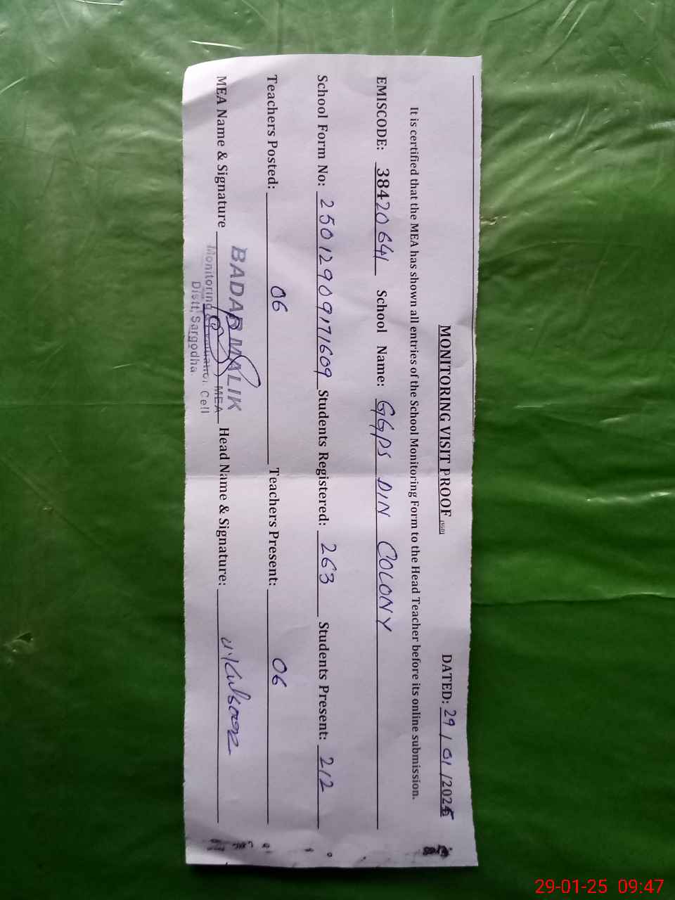 | EMIS Code: 38420641 | Name of School: GGPS DIN COLONY | |||