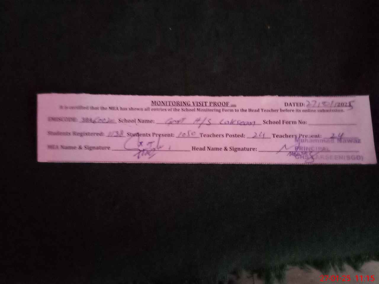 | Certified that this School was Inspected by the Undersigned MEA/DMO Today and the Information Stated Above is as Per Record. | |||||